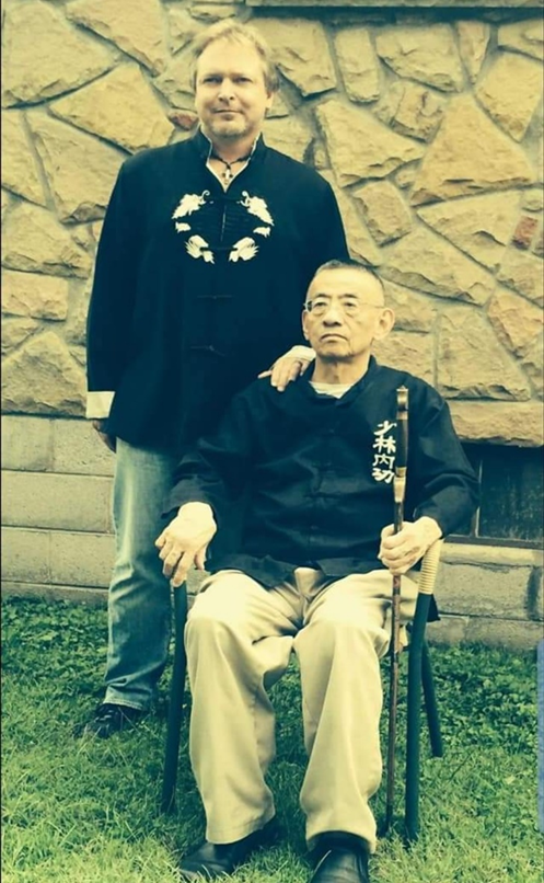 Grandmaster Dr. Tim Pickens standing beside Great Grandmaster Dr. John Winglock Ng.